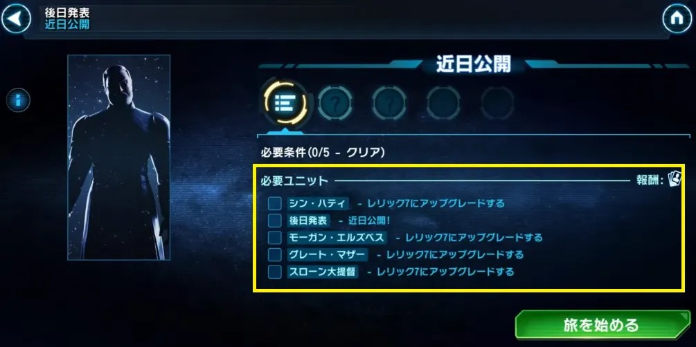 さらに、ベイランの取得要件についても1段階目が公開されています。1ユニットのみ「後日発表」となっていますが、ここにはマロックがアサインされるのでしょう。