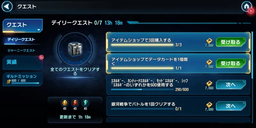 アップデート前にデイリー・クエストを完了していた場合、アップデートのデイリー・クエストで得られるはずだった報酬をすでに受け取っています。アップデート前にデイリークエストを一部しか完了していなかった場合、新しいアップデートでデイリー・クエストを完了することはできません。アップデートがリリースされ、正常に実行されたら、その補填に取り組みます。
