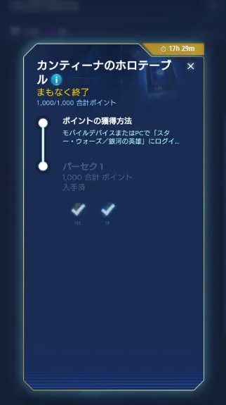 - 一部のプレイヤーがケッセル・ラン「カンティーナのホロテーブル」の進行状況が加算されない
