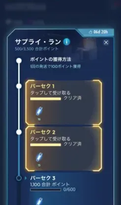 条件達成済の「パーセク」は金色に輝いて表示されます。