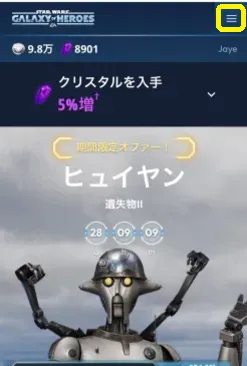 SWGoHのWEBストアにアクセスし、メニューから「ケッセル・ラン」を選択してページを移動します。