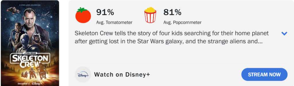 批評家筋からの評価(左側🍅)は90%台を最後まで維持、一般視聴者からの評価(右側🚮)も序盤から変わらず81%と高評価を得続けました。