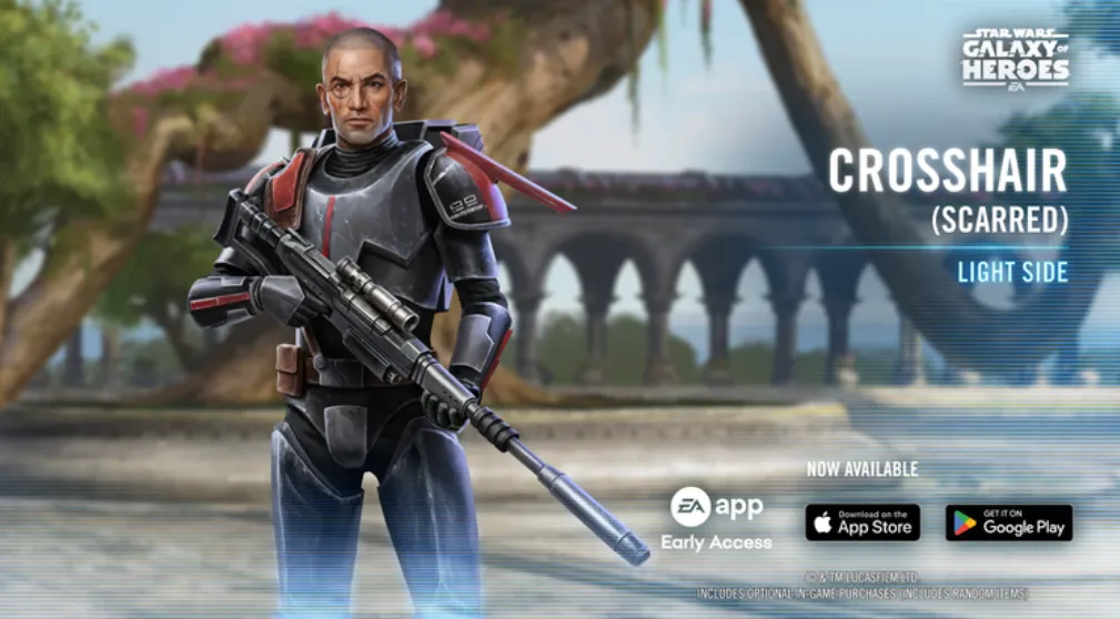 グランドアリーナで銀河の伝説が存在しない場合: クロスヘア(傷跡)が弱体化効果を受けるたびに、彼はそれを解除し、1 ターンの間 5% の攻撃力 (スタック可能、最大 100%) を獲得します。射撃訓練を持つバッド・バッチの味方が特殊スキルを使用するたび、クロスヘア(傷跡)がアシストします。