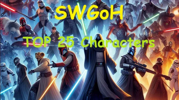 2025年3月時点でのSWGoHにおける、最強キャラクター(GLを除く)25体をランキング形式で紹介する内容です。