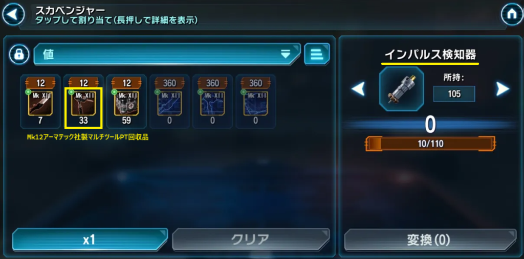 続いて、艦隊バトルのハードノードで入手できる「Mk12アーマテック社製マルチツールPT回収品」は、レリック資材のインパルス検知器を作成するために使用できます。
