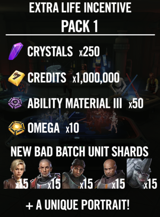 15 ドルを寄付することで、以下の特典パックを受け取れます。