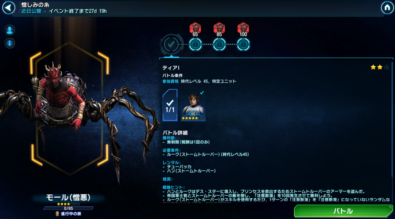 - このティアでは、★7、時代レベル75のモール(憎悪)をレンタルします。