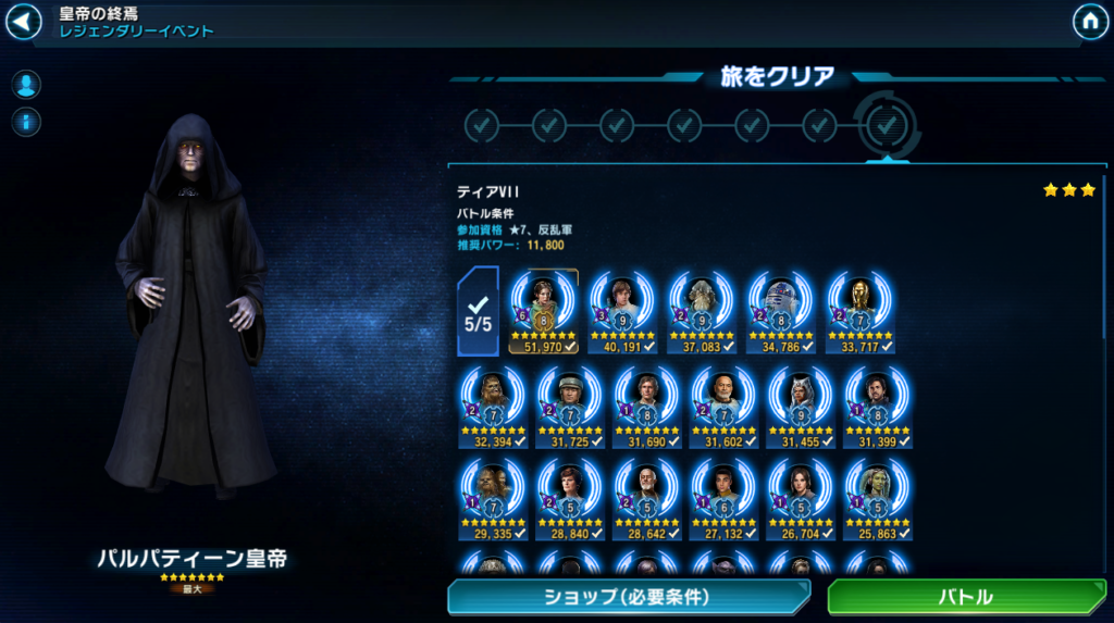 最初のクエストは「チームにローグ・ワンのユニットを入れてバトルに10回勝利する」というものです。