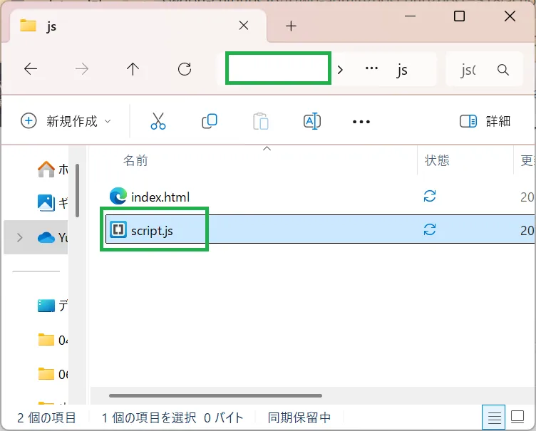 index.htmlがあるフォルダの中に「js」フォルダがあり、その中にscript.jsが保存されている場合、