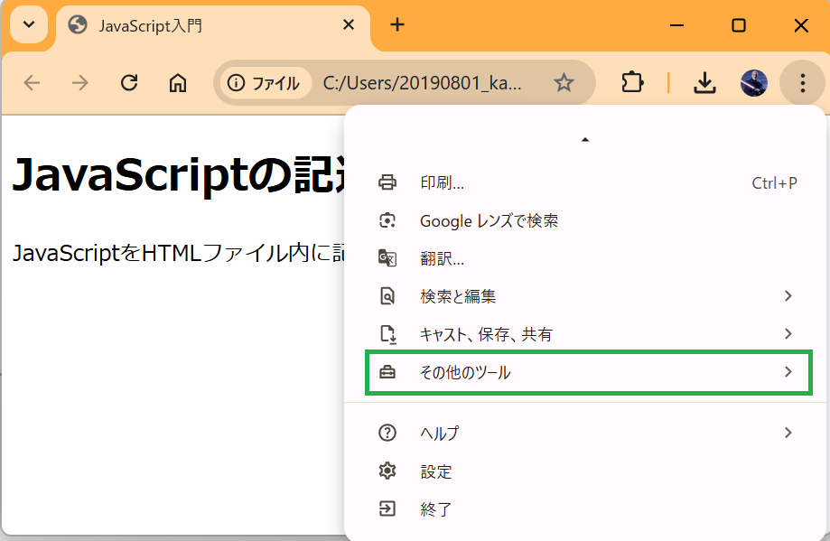 2. 「その他のツール」をクリックします。