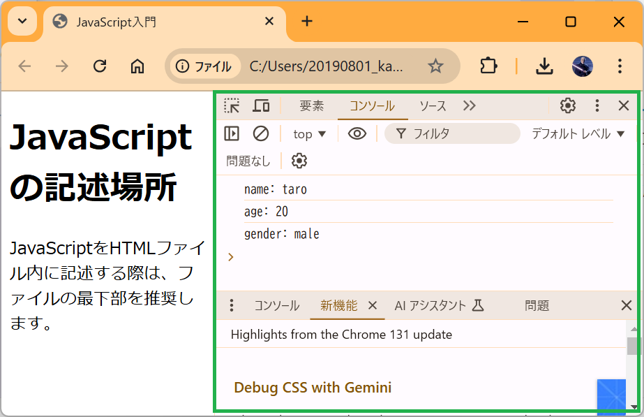 繰り返しになり恐縮ですが、ブラウザで動作・表示の確認をする際にはデベロッパーツールは開きっぱなしを強く推奨します。