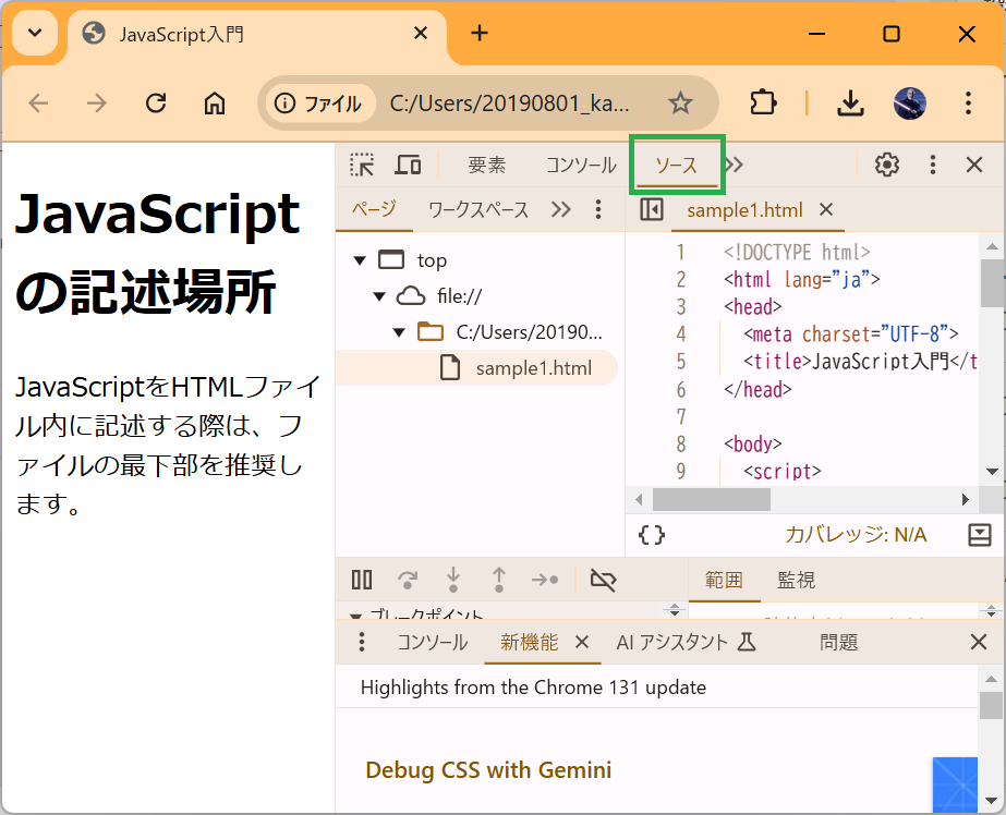 JavaScriptを使用した開発の場合、このタブが最も使用頻度が高くなると思います。