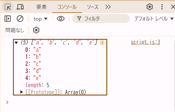 リテラル (*1) 表記での配列の作り方は、角カッコ[]を使用します。