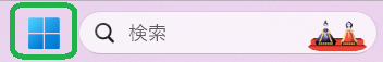 Windowsのスタートボタン(緑枠)をクリックします。