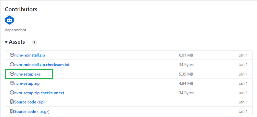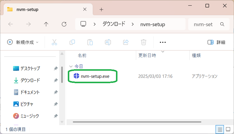 以下の「nvm-setup.exe」をクリックして、ダウンロードしてください。