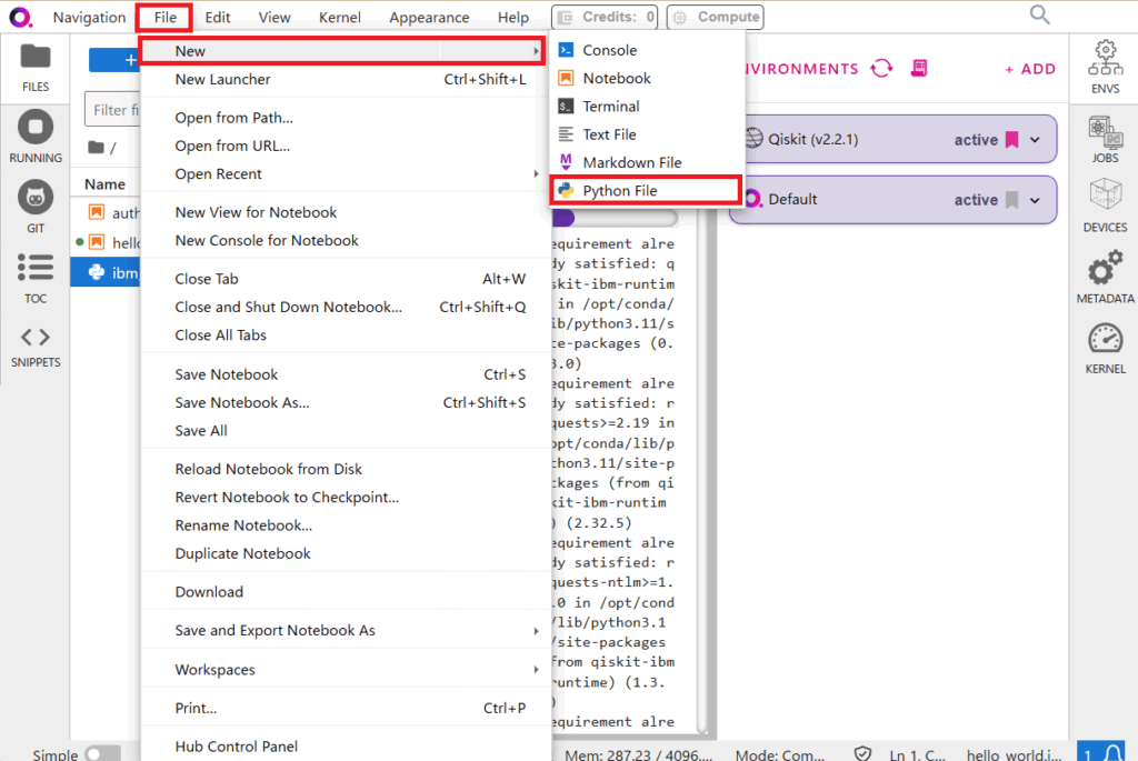 以下の手順で、qBraid Labのファイルエクスプローラー(通常は左側)で新しいPythonファイルを作成し、名前を ibm_auth.py として保存してください。