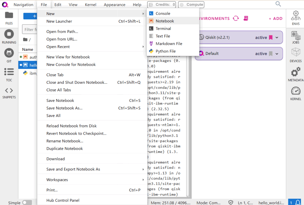 bell_state_experiment.ipynb (セル1)!pip install qiskit-ibm-runtime pylatexenc --upgradeステップ2:モジュール用の新規ファイルを作成
