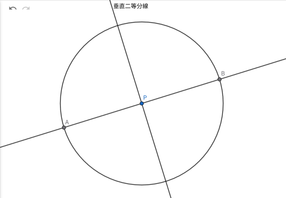 3. 線分 \(AB\) の垂直二等分線を作図します。